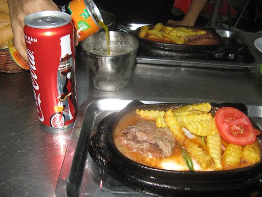 Dont remember where i got this place to visit. Not really bad but also not really good. Beefsteak and pan bread isnt something i eat everyday so when i do, i want it to taste good as i already pay the extra compare to and average meal already. Everything here is bland. Need salt and sugar here and there. The fry is very oily and havent had time to dry out yet. The price is ok but i would go to 5 Hòe Nhai to get better food. It only cost 20.000d more, like the different between 3.5$ and 4.5$ but it have much better food. The soil milk here is questionable too. It have the sticky layer on the top that mimilar to tofu in my drink, not really a fan of it. Overall, not feel like i being scam but 100% not...