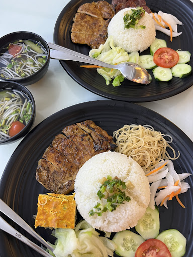 Read moreRead moreBiết đến quán lâu lắm rồi mà hôm qua đi chơi về tiện đường ghé vào ăn luôn. Đã được trước review rồi mà lúc đến vẫn bất ngờ vì đồ ăn và phục vụ của quán. Về đồ ăn: Là 1 người Sài Gòn chính hiệu, mình chưa ăn cơm tấm ở miền Bắc bao giờ vì luôn nghĩ sẽ không thể ngon và giống bằng quê hương, và có khi phải gia giảm các thứ để hợp khẩu vị người Bắc. Nhưng mình đã phải thay đổi suy nghĩ khi ăn ở đây. Có thể nói là quán làm giống gần 99% vị bản địa. Thịt sườn mềm, gạo tấm hàng chuẩn, bì thơm, chả thì bình thường, nhưng còn lạp xưởng vị hơi lạ, kiểu không giống lạp xưởng lắm ?_? Chỉ mỗi cái đó thôi còn lại mọi thứ đều tuyệt vời. Về giá cả: Thấp nhất là mỗi sườn không thì 60k, còn đầy đủ full topping thì 90k. Giá nhỉnh hơn các quán khác nhưng cực kỳ xứng đáng. Lúc order sẽ được hỏi có muốn thêm nhiều cơm không, mình thuộc dạng ăn khỏe mà còn thấy no nhé. Ăn xong sẽ được cho kẹo bạc hà nữa. Về phục vụ: Lúc mình đến tầm 6h tối nhưng quán khá vắng, nhân viên take care tốt, nhanh nhẹn. Lúc lấy xe ra về cho mình còn để hẳn mũ lên trên yên xe sẵn, 100₫ nhiệt tình. Về vị trí: Ở trước gà Thái Hà, tên quán to nổi bật dễ thấy lắm. = Nhìn chung, đây là 1 trải nghiệm quá là hài lòng, chính thức trở thành fan của quán, mỗi lần nhắc tới cơm tấm chắc chắn mình sẽ recommend quán...