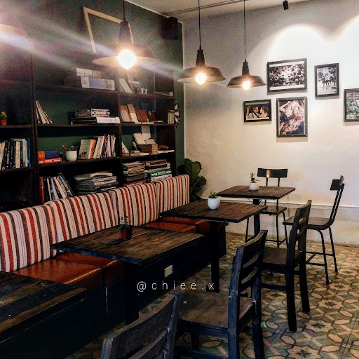 Về đồ uống: Đồ uống có giá và vị như mặt bằng chung các quán cà phê ở Hà Nội. Mình gọi một bạc sỉu 40k/cốc uống khá ổn. Chỉ có điểm trừ là cốc nước bị “dăm đá” bởi quán dùng đá vụn, khi uống phải bỏ bớt đá ra vì mình không thích nhai đá. Về không gian và dịch vụ: Các bạn nhân viên thân thiện, nhiệt tình. Buổi tối hôm đó quán có tổ chức một buổi ca nhạc ở phòng mình ngồi nên mình có được chị chủ nhờ tìm chỗ khác để ngồi. Chị chủ khá lịch sự và ân cần. Chị cũng tỏ ra là người có gu nghệ thuật khi mình thấy những bức tranh được trưng bày dường như đều có ý nghĩa theo cách nào đó. Không gian quán cũng khá thú vị. Mọi người bắt đầu bằng việc để xe ở khoảng sân, rồi đi bộ vài bậc lên tầng thì sẽ thấy ngay quầy order. Đứng trước quầy nhìn vào cũng dễ thấy quán còn khá nhiều loại rượu khác nhau. Không gian tầng 1 có độ trầm và tối nhiều, còn không gian tầng 2 có nhiều ánh sáng hơn. Như đã đề cập thì phòng mình ngồi hay tổ chức workshop vẽ tranh nên có khá nhiều dụng cụ vẽ và tranh ở đây. Còn hai không gian khác ở tầng 2 là một phòng nhỏ với sofa và phòng có giá sách lớn cùng ban công. Quán không nghiêng về phong cách nào cả, nhưng mình thấy có phần nhiều đơn sơ với những bức tường gồ ghề lộ gạch và cả những dây đèn led màu tím gợi cảm giác của một quán pub. Cả những chiếc khăn trải bàn và đèn bàn cũng gợi cảm giác cũ kỹ và có chiều sâu. Không biết có phải do hôm đó có sự kiện hay không nhưng buổi tối hôm đó quán không phục vụ menu cà phê và trà mà chỉ phục vụ menu rượu. Điều này cũng có chút bất tiện (và cả bất ngờ) cho mình vì mình hẹn bạn ra cà phê làm việc. Thêm một điểm nữa là ngồi ghế ở đây hơi đau lưng. Mình có di chuyển ra chỗ phòng sách thì bàn lại...