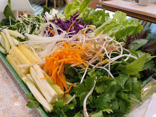 Read more💢 Cuốn n Roll - 90 Trần Thái Tông 💢 Điều khi nhiều người bạn nước ngoài đến Việt nam sợ, đó là món rau sống. Ăn cuốn, nhưng chỉ cuốn thịt chấm mắm, ăn chả cá chỉ ăn hành và rau trong nồi đã được rán cùng cá, ăn bún chả không ăn kinh giới, ăn bún bò huế không dám ăn hoa chuối,... Vậy là không thẩm thấu được hương vị TƯƠI của Việt Nam rồi. Vậy lí do sao họ không ăn? Vì không được vệ sinh sạch. Hôm nay tôi đưa quý vị đến quán có thể ăn no được rau sống với mắm. Quán nằm ngay ngã tư Trần Thái Tông & Duy Tân (con phố văn phòng), đỗ xe ô tô và xe máy rộng rãi. Trong 1600 reviews của tôi, khen/chê rõ ràng dựa lời bình luận và bằng số sao. Nếu có 10 sao thì tôi chắc chắn dành tặng Cuốn n Roll - 90 Trần Thái Tông . Khen nhiều về thái độ phục vụ tận tình, đảm bảo vệ sinh, chỉ cho chúng tôi cách ăn đúng (vì ai cũng nghĩ cứ cuốn vào là xong) . Khen vì sự sạch sẽ, bày biện rộng rãi, thoáng mát và không gian rất sáng & sang . Giá cả (rất phù hợp dân văn phòng) . khen/ khen/ khen... Cảm ơn vì những món cuốn ngon và những món khác cũng...