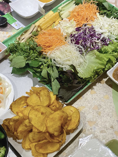 Read moreTrà Hibiscus Nha đam & Trà Sâm dứa Hạt chia: Mình đánh giá cao đồ uống ở đây nha. Trà Hibiscus khá ngọt, thơm mùi atiso, có thạch nha đam dai dai. Trà Sâm dứa thanh mát nhàn nhạt hơn, thơm mùi trà. Cuốn Nem Nướng Nha Trang: Nem nướng bình thường, tẩm ướp không có gì đặc biệt. Điểm cộng chung cho các món cuốn ở đây là siu nhìu rau, bắp cải tím, xà lách, cà rốt, dứa, rau mùi, tía tô,… và khá tươi. Nước chấm cũng okila. Cuốn Heo Quay: Thịt heo da giòn, tẩm ướp oki. Cuốn Bò Nướng Ngũ Vị: Món này mình thấy ngon nhất nè. Thịt bò tẩm ướp đậm đà, mềm ẩm, không bị dai, còn thơm mùi lá lốt nữa. Ưng ưng nha Cuốn chả ram: Chả ram giòn, nhân đầy đặn, tẩm ướp thì ăn được thui, mình thấy khum ấn tượng lắm. Lẩu chua cay: mình thấy nước lẩu bị chua hơn là cay :v Topping nhúng thì đa dạng, sủi cảo, viên tôm (siêu nhiều thịt chứ không độn bột, nhưng mình thấy hơi hôi), viên mọc (cái nì ngon), tôm tươi, rau nấm,… Có sốt tiêu xanh để chấm, khử tanh thì ok nhưng mà ko đậm đà í. Tàu Hũ Ky Chiên Tôm: Món này kiểu side dish nhưng mà oki nha, texture mềm mềm giòn giòn, nhân chắc thịt tôm, đậm đà. Khoai tây xoăn: Trông hấp dẫn nhưng mà vừa ỉu vừa nhạt, mình ko rec món này nha.