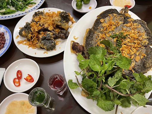 Được các chú các bác bên nhà chồng cho đi ăn baba, vừa thích thú vì được thưởng thức món mới vừa háo hức muốn xem baba thì mùi vị ra sao. Nhà hàng khá to và rộng rãi nằm phía bên trong đường đê, có cả riêng 1 khu để xe bên cạnh nhà hàng. Đi trên đê thì cũng nhìn thấy biển quán to đùng luôn. Lần đầu tiên nhìn thấy con baba khi đã chín - thơm - giòn. Cảm nhận là rất ít thịt, nguyên cái mai đã chả có tý thịt nào, chỉ có cái đường diềm bên ngoài là ăn được. Hơi dai dai, sần sật. Phần thịt baba thì thơm, mềm, ăn ngon cơ mà ít quá, nếu mà để ăn được kha khá chắc mỗi ng phải xơi một em mất. Dưng mờ giá của em nó hơi bị chát nên 04 người được 1 em là quá tuyệt rồi. Chén xong em nó thì còn được xơi món bún chuối đậu baba, thơm ơi là thơm, ngon tuyệt cú mèo. Không gian quán quá ư là đẹp và sang, lối vào có cả cái cầu bắc qua, phong cảnh trữ tình, rừng núi làm thực khách thấy bị cuốn hút lắm. Nhân viên phục vụ cũng tận tình tuy nhiên nhà hàng đông khách nên đôi khi các bạn ấy chưa phục vụ được tốt. Đến đây dùng bữa chủ yếu là các sếp đến tiếp khách, chứ lâu nhâu, xì tin, xì khói như mình thì là số cực ít. Ngoài ra menu còn khá nhiều món khác nhưng ăn như trên thui đã đủ no căng rún rùi. Có dịp nhất định sẽ lại ghé nhà hàng, à mải ăn và lại đi cùng người lớn tuổi nên hem có chụp được bức ảnh nào...