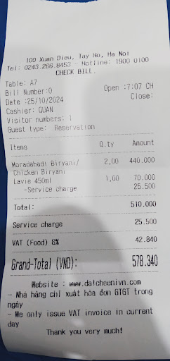 Read moreMy recent visit to Dalcheena was already destined to be a supreme dining experience right at the moment of our arrival. No sooner did the the manager and staff welcomed us to a table than they noticed we were being uncertain how we could arrange the best seating positions to attend to our 1.5 year old child as we embark on much-awaited dining with friends. There was a sequence of incrementally generous offers of space and seats, eventually ending up putting us at a table double the size of our company, half of which was a long sofa convenient for restless children. Luxuriously perched, we asked for order suggestions. A non-Vietnamese staff member, presumably Indian, eloquently started proposing a set of orders with a strikingly appropriate amount of confidence and pride in their own restaurant’s service quality only to be witnessed in minutes, but he was even quicker to recognise that we were not quite familiar enough with Indian foods to appreciate his perspectives on the rational behind his order suggestions. He momentarily switched with a Vietnamese staff member who then explained suggestions from a Vietnamese perspective, which we found ourselves ready to grasp. We felt as if the whole process of seeking suggestions was one of working with a team of perfect mastery of their trade. Tandoori chicken and fried cauliflower were helped by staff to individual plates in decent portions. This practice, although not one that I would usually expect nor appreciate from restaurant waiters, felt perfectly suitable in the context of this restaurant, and I think it gave a significant boost to the taste of food itself. Butter chicken masala and veggie dry curry, in contrast, were left to our own scooping, and again I appreciated this arrangement as I was deeply glad they knew the right boundary. Such subtle but important differentiation of serving styles represented the restaurant’s solid common sense, not excessive provision of unwanted services, in which they grounded their highest standard of hospitality. The taste of food itself was overall more than satisfactory. Having been to several Indian restaurants in Hanoi, Dalcheeni has become by far the first choice...