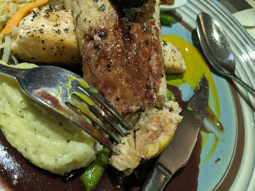Service 1/5 - Abysmal, there was no attention or care after we were seated by the hostess. Food was dropped off with as much charisma and light as the watered down margaritas that were served. Our table was not cleared before the next plates was shoved onto an already full table. When I suggested that the young male server remove the empty plates before setting down our mains, it was like he saw a 3 headed monster. No serving utensils were offered - I suppose we were to use a butter knife for the duck breast? It took a few rounds before we had cutlery to serve our food.