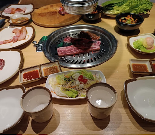 Chất lượng thịt ổn, không kiểu quá đông lạnh, rau tươi, kim chi vừa không chua, mì lạnh và canh rong biển ổn, tôm tươi, bạch tuộc tươi, salad nhiều.