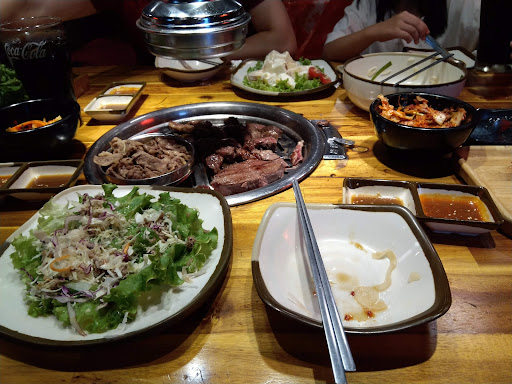 We got a korean buffet here for 2 people (419.000vnd per person - VAT and drinks not included) The food was above average, not bad but also not great, there are a wide variety of meat for you to choose from alongside other dishes (salads, gimbab,...) The hotpot was good, I personally prefer the kimchi hotpot soup (it IS spicy so becareful if you can't handle that kind of thing) Service was bad though, they gave us a tablet to order items from and told us that there's a progress bar on the screen which will turn red when we're ordering alot and they won't be accepting new order when it's red. They told us to wait a bit for it to "cooldown", guess what, it never did. We never ran out of food though as they kept bringing us dishes that I guess are cheaper. We were talking a lot so we didn't really ask for anything specific. They also keep asking us whether or not we want to order anything else (I mean seriously? We have a tablet to order that doesn't even work). Cozy atmosphere, a good place for a family/friends meetup.
