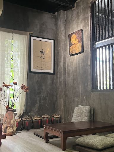 Read moreI feel so lucky to find such a heavenly place and have the opportunity to taste their special tea selection. We visited this tea house in the morning after visiting the temple of literature in an extremely hot weather. We came from sa pa with night train in that morning with our backpacks and needed a relaxation moment so badly. Indoor area was so cosy with floor cushion seats and low tables, it was cool with fans. We had special lotus green tea, it has a dreamy delicate taste. And black aged tea has a earthy full bodied taste. She prepared tea with care and explained so well, she was so kind. Garden is so peaceful with all plants, decorations, pond with acuarium fishes and a lovely cat. There was no one except us and we had the opportunity to chill on our own enjoy the teas with more pour over for a long time. We bought some lotus tea while we leave and I can’t wait to prepare tea ceremonies at home too. It was such an exquisite experience, I recommend for the ones looking for a runaway from chaotic...