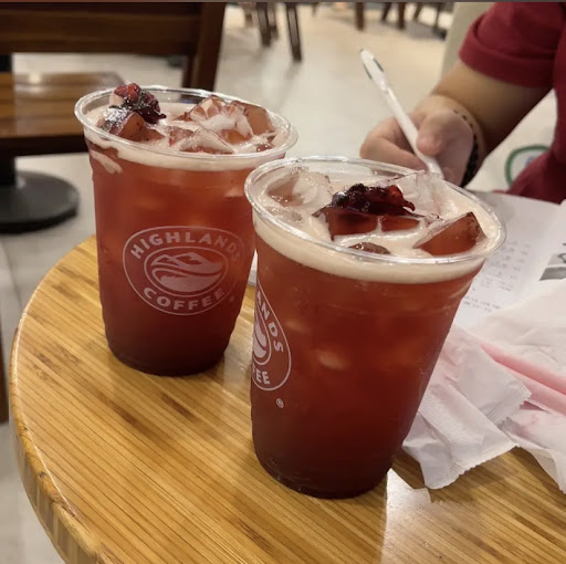 Về đồ uống thì vẫn giữ phong độ quen thuộc – cà phê đậm, thơm, dễ uống, vị chuẩn của Highlands. Mình gọi Kem mây dâu tằm và trà gì giống Atiso, kem mây ngon, pha chuẩn vị, không bị ngọt gắt hay nhạt như vài cơ sở khác nhưng cái kia hơi khó uống. Đá xay cũng rất ổn, mịn và giữ vị lâu. Thêm điểm cộng là đồ ra nhanh
