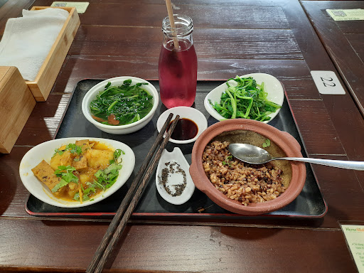 Đôi lần đến đây do khá tiện đường chỗ làm. Là một trong nhg khách hàng mua đồ thường xuyên ở siêu thị nhỏ bên dưới. Đồ ăn khá ok theo ý kiến chủ quan bản thân dù thấy ko có gì đặc sắc so với nhiều c/h thực dưỡng khác. . Nhưng đặc biệt thái độ phục vụ của nhân viên thì quá tồi và thiếu chuyên nghiệp. Đặc biệt là nhóm bạn nam. Ca làm ngày 20/3/2017, khoảng 2h30-3 h chiều, mình đến nơi, nhân viên tầng 1mời mình lên tầng lửng. Lên đến nơi gặp 1 bạn nam đang sắp xếp (như lời bạn í nói) , yêu cầu mình đi xuống với lí do đang dọn, nếu ngồi đây sẽ ko phục vụ với thái độ vô cùng bất lịch sự và khó chịu và trịch thượng ,dù khi hỏi mình đã rất lịch sự, tươi cười hỏi lại liệu mình có thể ngồi ở bàn góc cho 1ng được không. Trên tầng lúc đó có 1khách cũng đang ngồi 1mình và 1nhóm khách khoảng 4-5 người, bàn trống còn rất nhiều. Thiết nghĩ có thể bạ chủ hôm nay mặc nhầm áo bồi bàn!??! hoặc bạn nhân viên tự tin rằng mình đang làm nhầm nghề, đứng nhầm vị trí. Chắc chắn sẽ không gợi ý cho bất kỳ ai đến đây lần nào nữa và sẽ thông báo lại tình trạng này cho bất cứ ai muốn đến...