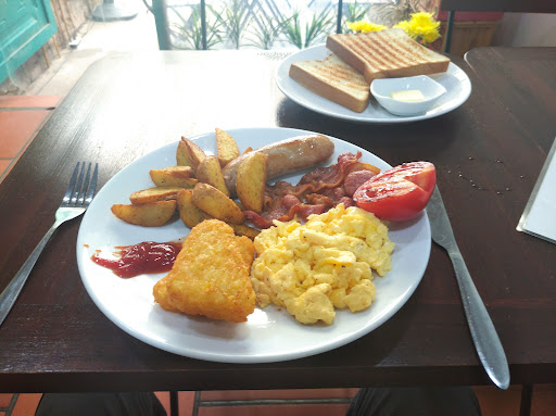 Love this place. Favourite dishes include the French toast (only 40K!) And Hash browns (add on for 20k). They serve full English breakfasts with real English sausages. Also love the Canadian breakfast, stuffed herb chicken sandwich, apple cheddar sandwich, the lemon juice and they have AMAZING French press coffee. Always busy around brunch time on the weekends but they are usually quite quick and the owners are super friendly and usually around. Very well fanned and ventilated but I'd recommend avoiding it when it rains since the roof leaks a bit. Very good location too across from the lake. Will continue to go back for the best hangover...