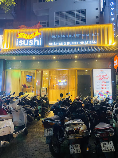1/Thức ăn: buffe không thể yêu cầu quá cao nhưng với mức giá 700k thì không ổn lắm. →Tên quán là isushi nhưng cơm sushi ăn dở, không thấy sự hiện diện của giấm để khơi thêm vị giác, cơm nhat và khô (k phải nấu ít nước mà là kiểu nấu để lâu nên bề măt hạt bị se lại) →Đĩa sashimi tổng hợp tặng đầu bữa ăn ổn dù tôm thì nhạt (toàn bộ các món có tôm đều vậy) →Khai vi có Edamame và khoai chiên sốt miso ăn rất vừa miệng, kim chi quá chua, salad rong biển ăn tạm được dù còn hơi tanh. →Món nóng: Bánh xèo, gà rán, mentaiko, mì xào, tempura tạm ổn. Trứng hấp bê ra nguội ngắt nên rất tanh. Mì trà xanh lanh là một món hay để checkin nhưng ăn không ổn lắm, mì nhat nấm siêu mặn, tuy nhiên ăn chung thì không hòa hợp được mặn nhạt. Steak bình thường. →California + Sushi: Cá hồi Tartate ăn ổn, nhưng như trên cơm dở nên giảm ngon nhiều. →Cơm Mỳ Lẩu: Tạm ổn, nhưng sự cố bảo là bếp hỏng nên đun ngoài rồi mới bê vào bàn thì không ổn chút nào. Cơm bát đá ok, mỳ Udon ăn dở. →Nigiri: Các món có sốt phô mai ăn ngon. →Tráng miệng: Ít sự lựa chọn, hai loại bánh đều ngọt và hơi bứ, ưu điểm là miếng nhỏ nên không cần bỏ phí, hai loại kem thì Vani tạm được, kem còn lại màu vàng không nhớ loai gì thì ngọt khé cổ. 2/Nhân viên: hết sức nhiệt tình, cái này 10 điểm , nhưng nhiều khi gọi món chả thấy đâu toàn thấy ra món lạ hoắc, đến lúc no căng rồi thì món mình gọi mới ra. 3/Quán mới khai trương, trang trí chưa hoàn thiên nhưng sạch,...