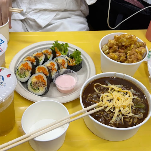 Mình đi ăn ngày 15/07/2025 2 người mình gọi gồm 3 món : mỳ đen trộn bò , gà mù tạt mật ong , kimbap thịt và 2 nước chanh dây tổng bill hết 165k Món gà mù tạt mật ong lên đầu tiên sốt được cho tí tẹo bạn mình đã xin bạn nhân viên thêm sốt mình thấy ăn ở mức ổn Kimbap miếng to ăn đầy đặn ăn hài hoà ngon Mỳ đen trộn bò : món này mình nghĩ nên gọi là mỳ nước đen bò ,với giá 50k nhưng sợi mỳ không phải sợi mỳ Hàn mà là sợi bé xíu như mỳ tôm , phần sốt lỏng toẹt không có tí gì vị tương đen nhiều y như một bát mỳ nước , phần bò được cắt miếng bé xíu cảm giác như ăn miếng bò trong gói mỳ trộn indomi , bạn mình còn bảo như sợ ai ăn hết bò cho được mấy miếng mà bé tí tẹo . Bọn mình đã bỏ món này vì vị nó như mỳ với nước ăn siêu chán nước chanh dây mình thấy uổng ổn không đặc sắc Dịch vụ : Mình khá sốc vì lần đầu ăn ở một quán mà lại dùng đồ hộp . Mình xem thử đánh giá và review thì thấy có đĩa bát bình thường. Mình không biết vì quán lười rửa hay vì lí do gì nhưng mà đem lại cho mình trải nghiệm khá tệ . Bạn nhân viên nữ yêu cầu thanh toán ngay giữa buổi án . Đây cũng là lần đầu tiên mình đi ăn quán mà yêu cầu thanh toán ngay giữa lúc ăn. Bọn mình đang ăn dở chưa hết một món thì bạn ra bảo thanh toán luôn . Mình không biết là quán sợ mình quỵt hay gì hay là phong cách phục vụ quán như thế nhưng mình mong nếu quán đã muốn khách thanh toán luôn có thể báo ngay từ đầu bữa chứ không kiểu đang ăn dở báo thanh toán Kìmchi : bạn mình từng đặt online quán và thấy có kimchi giao cùng nhưng lúc ăn y như hình không có kimchi mang ra thì ngay sau lúc thanh toán bạn mình có hỏi bạn nhân viên nữ rằng mình có quên kimchi của bạn em không vì bình thường em đặt online có thì bạn nhân viên trả lời bạn mình là bạn muống mang kimchi về ạ ? Mặt mình đúng kiểu bạn có hiểu bạn có đang hiểu ý của bạn mình là bàn mình không có kimchi không tự dưng lại muốn mang về là sao , mình và bạn mình xong khi thấy bạn nhân viên hỏi câu hỏi đó đều xịt keo. Kimchi được mang ra với đĩa nhựa nhỏ , mình còn trêu bạn mình là tưởng chỉ có mỗi...