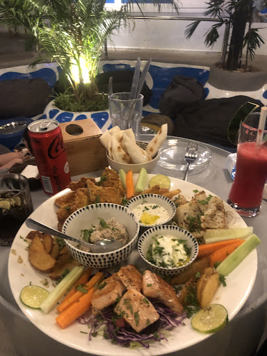 Cons: Food quality. We ordered a sea platter and didn’t enjoy it. It was not the Mediterranean cuisine we expected, it was just oily fried food. They put oil into their food even more than Chinese dishes. Fish were oily, the squid was the same, dips and hummus were covered in oil and pita were soaked in oil too. This place doesn’t have air-con. Wonder how hot it’d be in the summer.