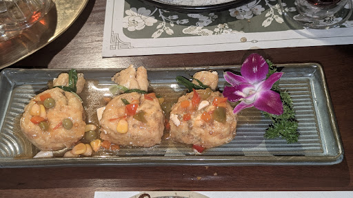 Had to wait 20 minutes to order, even though there were only 1 other table with people in the restaurant (next to us). We ordered an appetizer and a main course each. The main course was quickly served (before the appetizer) and my brown rice was super dry and the peas, corn and carrots came from a frozen package (by the looks and taste of them). None of us ate much of our food. Not horrible, but I expect more than dry stale food for this place. Then our appetizer got served, it was beautiful, and tasted okay with a delicious sauce.