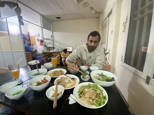 I came here because of the reviews. But when I arrived I thought I went to the wrong restaurant. It was so small that I could not belive it was a (and the only) 5 star restaurant in the Hanoi old quarters. Not to mention its a VEGAN restaurant. Honestly the environment felt a bit underwhelming but eventually as our food came it got cozier and homier. The food was actually beyond amazing. Arguably the best Vietnamese food I have ever eaten even though it was fully vegan. The flavours were through the roof but the texture wast the best but I'll let it slide as it is vegan after all. Also this is a very cheap and economical place based on the food but there were also like a billion free dishes which were rice, very tasty Tofu, a salad, a savory banana dish, a cleansing soup and an amazing sweet and sour dipping sauce not to mention that all these dishes were pretty much unlimited. The owner of the establishment was a kind and fun person who helped us and made our dining experience even better by Tring his best to understand us using Google translate and also giving our driver free food even though we didn't ask for it. The only single down side is that the washroom is kinda dirty. But other than that it was my favorite dining experience in the entirety of Vietnam. 5/5 stars for this restaurant 🌟 🌟🌟 🌟 🌟 will definitely recommend this one.