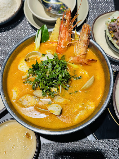 parking attendant was very helpful and friendly. service is efficient, enthusiastic and polite. Took a weirdly long time at the counter to pay though. drinks are fresh, well made and have a nice variety. seafood tom yum mussels and prawns were mainly tasteless, slightly bitter, chewy and did not taste fresh. Larb was mainly onion. But the dressing was nice. Most of the menu items are fried and arrive very greasy. prices seem excessive considering most of the ingredients are easily found in Vietnamese domestic markets. There's nothing exotic being imported here to make these dishes. Overall: okay but...