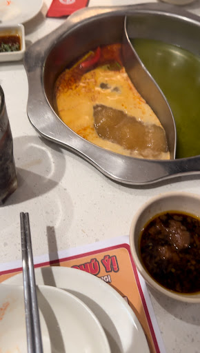 Read moreMình đi hôm 31/8 (2 NL 1 TE), lúc mình đến là 6h. Nhà hàng lúc đấy chưa có khách nào. Nhân viên bảo nhà mình chưa đặt bàn trc nên ngồi băng chuyền. Mình hỏi lại là có xếp giúp mình bàn gia đình đc k, các bạn ấy bảo bàn đặt hết rồi, nếu muốn ngồi bàn phải xong trc 6h30 (ăn trong 30p 😂) :)))) Ok, ngồi băng chuyền cũng đc. Nhà mình vừa kéo ghế ra ngồi thì bạn nam đẩy luôn ghế ch mình vào sát ghế mình (mình đang ngồi giữa), bảo suất trẻ em k có nồi nên 3 ng chỉ đc ngồi 2 nồi thôi. Mình hỏi lại là trc mình ăn ở cơ sở khác vẫn cho ngồi 3 chỗ, chỉ ko đặt nồi lên thôi, chứ 3 ng ngồi chen thế hơi chật (bạn nhà mình 8 tuổi nhưng dưới 1m3), mà quán cũng chưa có khách nào ngoài nhà mình, nhưng bạn ấy nhất quyết k cho, bảo lễ nhà em đông khách ac thông cảm :))) Đến đây thì thôi, nhà mình đứng dậy đi về. Xuống Haidilao làm bữa ngon luôn (Haidilao lúc đấy full hơn nửa rồi nhưng pvu vẫn rất nice). Nếu k phải vì bạn bé nhà mình xin đi ăn lẩu băng chuyền thì mình về luôn từ lúc các bạn í bảo nếu c muốn ngồi bàn thì phải xong trc 6h30 rồi :))) chả hiểu nghĩ gì cố nói thêm câu đó với khách (chắc chắn k gia đình nào ăn xong trong...