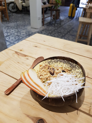 I have tried many smoothie bowls in my life, but the one I had here was by far the best of my life (not including soft serve Açaí ;)). The cafe itself is located close to the lake up north, but takes 1h walking from old quarter. Second floor is lovely, ground floor rather dark, but has a certain vibes that’s cool. Friendly staff with great English! You order and pay at the counter first. Was here last year just having coffee, but this time I also had their food First of all really friendly staff who were able to accommodate my wish of a banana free smoothie bowl I chose mango Passionfruit and I think avocado and topping was also mango, pitaya, coconut and Granola I am impressed by the freshness of fruits and the amount of topping for this price! It’s cheap and delicious. To be honest out of this world! The texture was amazing and the taste likewise. Price is great I think 60k only and you can add peanut butter for only 5k - highly recommended Free wifi and water, clean facilities and the coffee was the best so far in Vietnam. I ordered their coconut coffee which is like a slushy and had it without sugar Was strong and delicious! I am totally impressed! Highly recommend going here! So worth it and can’t wait to try their bagel which looked nice Their sourdough is amazing. I had their avocado one and it was packed, nicely toasted and crunchy as it should be Best café in Vietnam Need to try more...