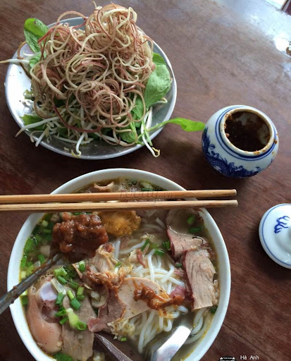 Ăn ở quán rất rất nhiều lần rồi ý, trc quán ở gần trường mình phía dưới viện bỏng cơ, 1 nam nay thi chuyển ra tô hiệu vs đằng sau metro hà đông nen k đc ăn thường xuyên như trc nữa. Vị trí quán cách metro 1 đoạn thôi nhé, biển hiệu to nhưng hơi thụt vào nên hay bị đi qua lam ạ, chỗ để xe ngay trc quán thì bé lam, đc 1 xíu thôi à. Món ăn: mình cực kì thích bún bò huế ở đây ạ, ăn nhiều quán khác nhung k thấy ngon bằng đâu, có lẽ chỉ ở đây có ruốc, ruốc màu nâu, quyện lắm, thơm mữa, cho ruốc vs ớt xay vào tô bún làm nc dùng đậm đà lắm, có tô bt 30 k và đặc biệt 40 k, nhiều thịt, mọc tiết, móng giò nữa, rau sống tươi, bạn nào k thích có thể bảo chần qua. Phục vụ: nhanh, chú chủ quán là ng huế...
