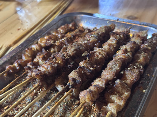 Về đồ ăn, mình ăn lẩu ở đây hai lần rồi. Không ăn được cay thì nhớ nhắc quán giảm cay nhé. Đồ ăn lẩu khá đa dạng được xiên vào que và tính tiền theo giá của từng que nhé. Quán sẽ làm chín đồ ăn cho mình trước nên thả vào nồi lẩu phát ăn được luôn. Mình thấy ấn tượng nhất là miến - sợi miến to, dai giòn, cái nấm tuyết và thịt lợn - phần thịt diềm, thịt nạc ở giữa, viền mỡ ăn ko ngấy ko dai.