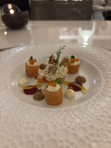 Salmon Gravlax — Fresh, bright, and layered. The salmon was silky, with wasabi that came through clearly but never overpowered. Pomelo added acid and brightness, while dill Chantilly was an exceptional touch: creamy yet fresh, the perfect complement to fish. Pink peppercorn gave just the right spice, the sesame crust added crunch, and the ginger, red onion, and beetroot added freshness with a slight pickled note. It all came together in one perfect bite.