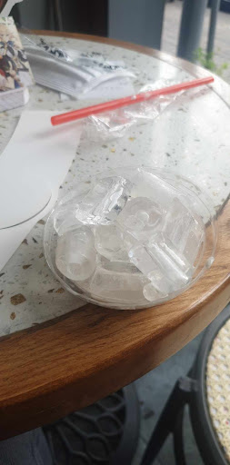Đá quá nhiều. Mình lấy thìa ăn nhưng múc ra toàn là đá ạ, vì thế mình mới gạt đá sang nắp như hình để lấy chỗ mà múc, nhưng gạt đầy nắp đến độ không đủ chỗ để thêm cục đá nào nữa, trong cốc vẫn còn 1 đống đá và mình vẫn không thể múc được nổi 1 hạt trân châu ở dưới vì bị đá gạt xuống nước hết rồi :))