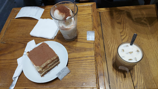 Read moreMy experience was pleasant, fast delivery, helpful cashier with English. Tiramisu and yogurt were delicious but coffee a bit too sweet (same as some young people cafes in Indonesia). Indoors was very stinky with vinegar scent though, and there is a sewer? truck arriving that made us eat our orders quickly before getting out, probably an incident...