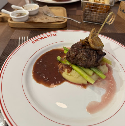 After a few days of Pho and local Vietnamese cuisine, our group asked our tour guide to recommend a French restaurant to try. He recommended Le Monde. Needless to say, we went there with very high expectations. Overall, I would say I am disappointed by the quality of food but was appreciative of the effort of the staff serving us. The steak was medium but quite chewy. The sauce was not standout and bland. The spaghetti Bolognese was alright for my taste. However the mushroom soup was bland and cold not really warming the hearts up . The salad was nicely done with lots of veggies for the fiber hungry people. Kudos. We were very surprised by the speed of food being served . But after tasting the food, we suspect the steak was already almost done and precooked. Maybe we should just stick to Vietnamese. After all we are in the...