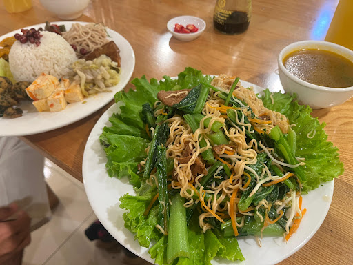 Came to the Loving Hut after a heavy work out and was thinking about getting some fried food (don't expect any logic, don't ask), but either way, came across this restaurant and thought veggies wouldn't be such a bad idea. No regrets. Came in, there's seating options on different floors as well, and get handed the menu. There's a variety of options, I just went for the Mien Tron as a single meal for 50K and wow, that could easily have been my entire food intake of the day, portions are HUGE. Below all the veggies you'll find the vegan pork pate, noodles and tofu too. It's also delicious, let's not forget. So I actually gobbled the entire thing up, it was served on a platter with spoon and chopsticks, and at the end of the meal I simply paid the owner, I guess, an elder lady sitting at the table right behind me. She didn't speak much english, but the menu is translated, albeit with some... malfunctions, but it's more than enough for anyone to get around. Either way, if you're lookign for vegan or vegetarian food at a more than decent price, this is definitely one of the options you shouldn't overlook. They also deliver (vietnammm is your friend), and they also sell a bunch of other stuff such as plant based...