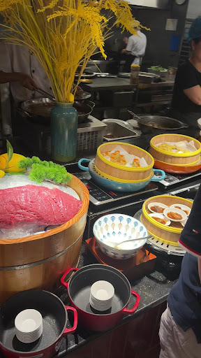 Đồ ăn ở mức xứng đáng với giá vé buffet mình trả. Rất nhiều sự lựa chọn từ món Á đến Âu, đồ Âu thì ăn không phải vị giống kiểu nguyên bản đồ ăn tây cho lắm nhưng vẫn ok. Và đặt biệt có cả các món nước Việt Nam như bún, phở, vv. Khẩu vị tùy quan điểm cá nhân đánh giá, còn theo mình ở mức ăn được. Nhân viên phục vụ rất nhiệt tình và lịch sự, luôn săn sàng hỗ trợ khách và dọn đĩa dùng rồi rất nhanh chóng để khách chọn món mới. Khẩu phần trưng bày ở đây cho cắc món ăn đảm bảo đủ để phục vụ khách hàng. Đây là điểm cộng rất lớn của nhà hàng đã liên tục châm thêm (top up) thức ăn khi gần hết. Việc này giúp nâng cao trải nghiệm khách hàng và tránh để tình trạng khách hàng trang giành đồ ăn hải sản như ở một số nhà hàng buffet khác ở Hà Nội.