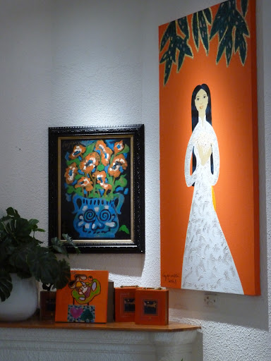 Quay trở lại với nội dung chính. Khi bước vào Mezzico, điều đầu tiên mình cảm nhận được sự ấm áp và vun vén tình yêu của người chủ quán dành cho Mezzico. Đi tiếp vào phía bên trong, có 1 khoảng không gian mà mình đã có một cảm giác như thể khi bước vào trong đó, sẽ là 1 không gian rộng lớn và chỉ có nghệ thuật ở đó mà mình muốn chìm đắm vào mà thôi. Thực sự rất thích góc đó và chỉ muốn được ngắm mãi mỗi khi tới đây.