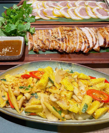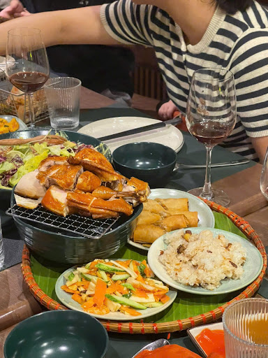 *Đồ ăn: Hiếm có nhà hàng nào tầm trung mà mình thấy dc sự tinh tế, để ý tới việc làm cho từng món ăn ko chỉ ngon vừa vặn mà còn có gì đó nổi bật và khác biệt như ở đây (dù k phải fine dining hay fusion). Ví dụ: Canh gà lá giang sử dụng má đùi thì phải, thịt không xương chín tới mềm mọng không khô, nước dùng chua thanh siêu ngon. Mặc dù mùa hè nhưng quán vẫn đặt trên bếp nến đun để giữ ấm. Cải thảo sốt không chỉ đơn giản là sốt mà còn cuộn lại bày hình hoa. Tart hải sản siêu lạ và ngon, vỏ bánh giòn, nhân hải sản ngậy vừa hơi chua ngọt man mát, ko ngậy hẳn như nem kem bơ hải sản, highly recommended nha Xôi ở mẹt gà được đồ không chỉ dẻo mà còn rất cầu kỳ vì hơi ngọt ngọt và thơm mùi thảo mộc do đồ cùng táo đỏ, bạch quả... Trà m k nhớ gọi trà j, nhưng điểm khác biệt là có vài lát chanh vàng làm vị trà nổi bật mùi thơm, hơi chua dịu.