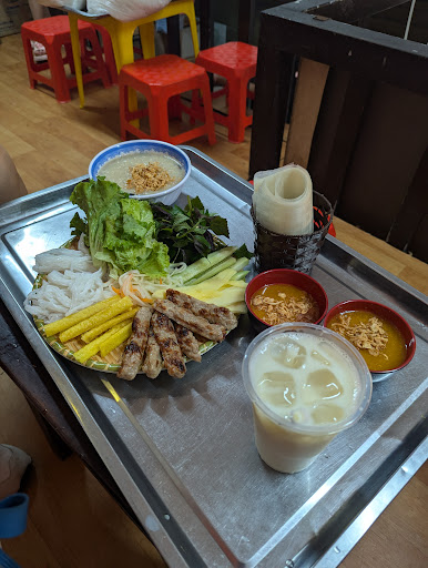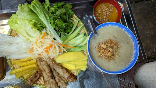 Read moreOn this street, you have stall assistants waving around menus. What drew me here was that I saw the colourful platter on several tables and I just knew that I had to try it. Get the spring roll platter (45K VND). If you're not familiar with this dish, what you can do is to get a piece of rice paper. Then as a base, add the larger vegetables, and then proceed to add a little of each item from the platter. Finally, you wrap everything up nice and tight, and dip it into the sauce provided. I pretty much enjoyed this very much because the vegetables were fresh and provided a nice contrast to the savoury meat patty. You can also get a mushroom and barley porridge (25K) which was pretty tasty. If you're looking for something with an insane cheese pull, go for the chicken cheese ball (45K VND for 5 pieces). Do be careful when biting in as it was...