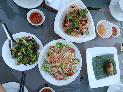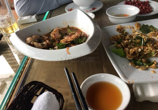 Giá cả: Khá hợp lý với chất lượng đồ ăn ngon và dịch vụ chất lượng ntn ạ. Mình ăn buffet 419k 1 người thì sẽ thử đc nhiều món, gọi món thì tầm 370k/1 món nhưng khẩu phần rất nhiều nên mình nghĩ các bạn nên gọi buffet ạ. Mình có đính kèm bill trong ảnh Chất lượng đồ ăn: Mình gọi gần hết menu buffet, hầu hết là các món về cá, ngoài ra có 1 số món ngoài trong buffet như xôi chim, cơm rang, ngô chiên, khoai chiên, mì xào, trà đá, tráng miệng. Hôm mình đi ăn có thử các món sau mà mình thấy là nổi bật: Gỏi cá sốt thái: Chua ngọt cay tê đậm vị, ăn vs hành tím nhức nách Cá sốt hoàng bào: Sốt rất ngon, hậu vị ngọt thanh Chả cá lăng: Cá rắn, chắc thịt, thơm, quán cho siêu nhiều hành Các món cá còn lại mình thấy cũng khá lạ nhưng ăn bthg, thật ra đến cuối ăn nhiều cá quá mng sẽ còn cảm thấy hơi ngấy =)) Quán cho khẩu phần rất vừa, mình đi 3 ng mỗi món chỉ có 3 miếng cá nên thử đc nhiều món Không gian: Quán 2 tầng, có phòng điều hoà và view ra sông. Bên ngoài có bàn ngay cạnh sông ngồi tối chắc sẽ rất đẹp, lãng mạn. Quán có tổ chức đám cưới ở đây nha mng, không gian có thể ngồi đc hơn 100 ng Dịch vụ: Nhân viên niềm nở và khá nhiệt tình. Tuy nhiên quán khá rộng nên dù vắng thì muốn gọi thêm món mình cũng sẽ cần chủ động ra nch vs các b. Nay mình ăn các món phục vụ rất nhanh, gọi tầm 10-15' là các bạn ra món luôn...