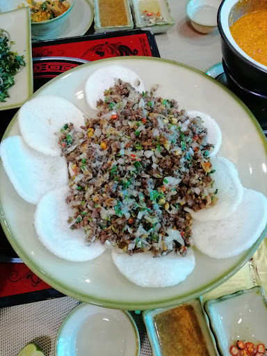 Lần đầu mình ăn món này, đặc sản dân tộc vùng miền á, không có phổ biến lắm.. Ở đây sẽ có set với nồi cá được om với mắm thì phải chua chua đằm đằm, giữa là một bông hóa lớn các gia vị ăn cùng như hành, tỏi, ớt,... và bày trí xung quanh là nhiều thật nhiều các loại rau từ rau phổ biến như xà lách đến các rau rừng khó kiếm.. Có lẽ là mấy món này sẽ hợp với người lớn tuổi như ba ba đi nhậu đó. Món ăn khá hay và độc đáo, rất nên thử. Món này khi ăn sẽ lấy phần lá bọc thêm vơi một số gia vị mình thích và cá bên trong cùng, có thể bảo nhân viên gói cho ăn lần đầu nếu...