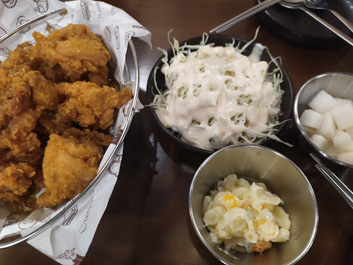 Read moreVề đồ ăn: Bọn mình đi 6 người, gọi 3 phần gà không xương các vị khác nhau, 1 khoai tây chiên, 1 mỳ tương đen, 1 cơm trộn, 1 tok rose chia ra mỗi người hết tầm 180k (đã giảm 10% nhờ đánh giá trên Google Map - đi sinh nhật vào đúng ngày còn được giảm thêm). Nhìn chung gà có chất lượng ở mức khá: lớp vỏ bên ngoài giòn, gà ẩm, mềm, chín kỹ chứ không bị sống bên trong. Gà sốt ngọt có sốt áo đều, được quán cho khá nhiều sốt (ăn hết gà vẫn còn sốt bên dưới). Vị sốt thơm, vừa ăn, cắn vào thấy khá sảng khoái. Sốt kem hành có độ chua và ngọt nhẹ, ăn cũng ngon. Gà lắc phô mai thì hơi kém cạnh một chút vì dù bột phô mai cho khá thoáng tay và khá thơm nhưng hơi đậm vị. Mỳ tương đen cũng được mình đánh giá tốt: sốt tương đen đặc trưng, được gia giảm để không quá nồng mà có vị hơi ngọt dễ ăn. Trong bát có trứng ốp chín kỹ, thịt và rau củ giòn giòn ăn vui miệng. Phần Tok rose có vị khá béo, thiên ngấy; phần Tok mềm, dẻo ăn cùng với chả cá ở mức ổn. Cơm trộn với thịt băm, rau củ và một quả trứng lòng đào ăn được, hơi nhạt so với mình (không hiểu sao ngửi mùi sốt trộn làm mình nhớ tới cơm mẻ của Việt Nam!). Còn lại thì rổ khoai chiên 70k làm mình rất thất vọng: ăn y hệt khoai đông lạnh, bị bột nhiều và chiên không đủ giòn. Nhìn chung hỏi mình có quay lại không thì mình không chắc. Mình thấy giá hơi cao với mình, trong khi đồ ăn ở một vài chỗ mình biết có mức giá hợp lý hơn, với chất lượng đồ ăn cũng tương đương. Những miếng gà rán vẫn là những niềm hạnh phúc giòn rụm trong miệng, nhưng hạnh phúc ở đây giá hơi cao quá TT (quán có tính thuế VAT nữa) Về không gian và dịch vụ: Trông quán có phong cách của mấy quán diner kiểu Mỹ. Thú thực là khi đến đây, mình cảm giác như đang đi ăn Burger hơn là ăn gà rán kiểu Hàn. Không gian hơi tối, trông hơi “trần trụi”, nhiều đèn neon, các vách ngăn thì là lướt sắt. Ghế da ở tầng 2 cũng hơi thấp, làm việc ngồi ăn chưa được quá thoải mái và có độ với dù mình cũng tương đối cao. Tổng thể thì cũng khá có gu. Dịch vụ được thiết kế cũng khá tốt: mỗi bàn đều có chuông để gọi nhân viên, vì thế trải nghiệm khách hàng được nâng cao - không cần phải gọi to hay đứng lên gọi. Các bạn nhân viên cũng nhiệt tình, lễ phép, không có thái độ mà luôn niềm nở giúp đỡ. Bạn nhân viên order còn cúi đầu với bọn mình (mong bạn thoải mái hơn). Các chú bảo vệ cũng nhiệt tình mở cửa và che dù cho bọn mình (hôm đó trời có mưa nhỏ). Có thể nói là dịch vụ giúp đem lại cảm giác trọn vẹn và thoải mái, cũng tương...