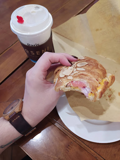 Mình cùng gia đình tới đây mua bánh ăn ngày hôm nay (2/9). Cửa hàng vẫn hoạt động vào ngày lễ, không gian rộng rãi mát mẻ và nhiều bàn ghế. Nhân viên chậm trễ trong việc dọn dẹp đồ ăn thừa trên bàn của khách, nhiều bàn la liệt cốc nhựa ống hút với giấy ăn vo viên. Chắc ngày lễ nên các bạn bận :))) Mình chọn một bánh Black Forest size 2 giá 320k ăn tại chỗ cùng với 4 chiếc donuts khác vị, gồm chocolate, matcha, dâu và xoài. Donuts nhìn chung hương vị đơn giản và dễ ăn, vị chocolate là ngon nhất với mình. Bánh Black Forest có vẻ không phải là bánh mới nhưng vẫn ngon, lượng kem và lượng cốt bánh cân đối, nhân bánh có quả anh đào và thạch anh đào. Bánh ăn vừa miệng, không bị ngấy hay khô, bàn mình chia nhau ăn hết luôn :))) PG có đồ uống nhưng mình không gọi vì có vẻ như nhiều review không đánh giá cao đồ uống tại đây, dù mình có thoáng thấy các bạn pha sữa tươi trân châu đường đen bằng Dalat Milk thì đoán hẳn là uống ngon lắm. Đồ uống dao động từ 45-70k, có nhiều loại từ trà cho đến cà phê. Mình khá bất ngờ là bánh ở PG khá ít loại, hầu hết là bánh mì thôi. Ngày xưa mình ăn bánh honey toast ở PG ngon lắm mà giờ đâu rồi ấy nhỉ, các bạn ấy không làm nữa à? Buồn ghê vì honey...
