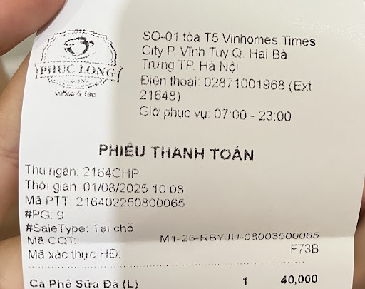 Read moreRead moreĐây là lần đầu tiên mình uống Phúc Long nên cảm thấy khá bất ngờ vì vị khá đậm ( mặc dù đã nghe là nổi tiếng đậm trà từ trước ) . Không gian : Khá nhỏ , nằm vỏn vẹn ở một góc của toà chung cư, hôm mình đi khá đông người nên cảm giác hơi bí và nóng dù có bật điều hoà( 4 cái ) . Bàn ghế cũng khá sạch sẽ phù hợp cho nhiều nhóm người tuy nhiên mình thấy bàn nó cứ nhỏ nhỏ sao ấy. Nhà vệ sinh thoáng và thơm nhưng lại bố trí gần chỗ khách uống nước hơi kì ☺️☺️☺️. Dịch vụ : mình thấy ra đồ rất nhanh nhưng chị nhân viên cảm giác không mấy cảm tình lắm ( dù phục vụ vẫn ổn ) nhưng cứ hơi kiểu nhanh nhanh chóng chóng làm gì ý . Có quầy bày các loại trà để phục vụ khách có nhu cầu. Đồ uống : Menu khá đa dạng , chủ yếu là trà và trà sữa . Mình có gọi trà sữa lài và trà sữa Phúc Long ( bestseller ) , cả hai loại đều đậm trà , đậm đến nỗi uống có hậu vị hơi chát và đắng ( ý là vẫn bùi béo) chứ không đến nỗi như uống nước chè. Trà sữa lài thơm nhưng không mấy nổi bật , trà sữa Phúc Long ngon hơi lài với béo vị bột sữa ( hình như dùng trà ô long ). = Trải nghiệm ổn , nói chung khá ổn vì mình apply coupon nên rẻ ổn (55k hai cốc size L ) còn bình thường 55k 1 cốc nhé mn. Ở dưới là menu cho mọi người tham khảo . Mà nhà vệ sinh có cái cửa hơi kì ... không biết cho...