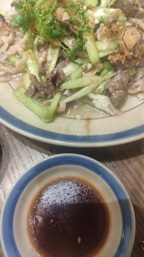 We decided to stop in for lunch after seeing groups of locals eating on the balcony while we were sitting in a donut shop across the street. We are so glad we tried it out because it was pholicious! The service was excellent- very friendly, welcoming and quick. We asked to sit upstairs, on the balcony, where most of the locals were. We ordered the Pho with half cooked tenderloin. The broth was so flavourful and clean; the noodles seemed fresh; the beef was cooked perfectly! The fried dough stick was a little chewy on its own, but when you dip it into the broth, it soaks up all the flavour and is soft and tasty. The restaurant was generally clean (can't say for the washrooms as we didn't use them). There's a staff member upstairs that was very attentive to cleaning the sitting areas, and if you needed anything, he was quick to get it for you. We really appreciate the way they handled the meats as they kept them in a fridge downstairs where they cook. The one bowl of pho came to a total of 55,000VND (a little over $2USD). We approve and would...