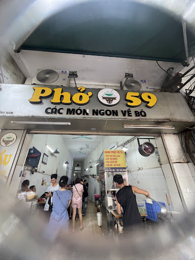Quán phở nằm ngay đoạn đường nhiều quán ăn nhất Lĩnh Nam nên lúc nào cũng sầm uất, khách ra vào ăn uống tấp nập. Quán nhìn ngoài cũng không lớn, không gian bên trong không vuông vức hơi xéo và thu nhỏ như ống phễu. Tuy vậy quán lại là một trong những quán đông nhất ở đây.
