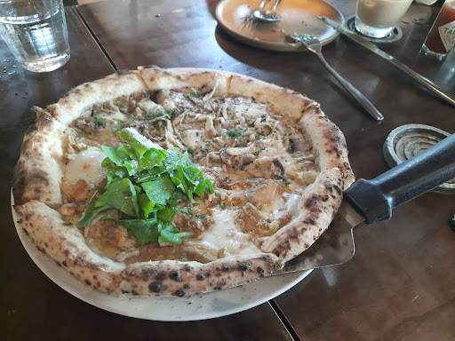 We had a nice time here and the service is outstanding. The waiter patiently answered questions about the menu. I told him I wanted a drink that wasn’t too sweet, and he offered to let me mix my own proportions for the passion fruit soda- simple syrup, passion fruit juice, and sparking water -at the table. It ended up making 2 glasses worth! We also got a rocket detox juice and it was great. We got a kale salad - delicious. We also ordered a 1/2 and 1/2 pizza - parma ham margarita with burrata and soy garlic beef. We greatly preferred the parma ham margarita pizza- it was highlight of our meal. The burrata and parma were better than that which we tried in Italy. The crust was not quite up to Italian standards, but still good. The soy garlic beef was a little underwhelming. The toppings and crust didn’t meld together. They were just the sum of their (kinda boring) parts, but not more. We also got a bolognese pasta with smoked cheese. It was also underwhelming. Tasty, but no “wow” factor. I would come back and try more menu items with burrata and parma :)