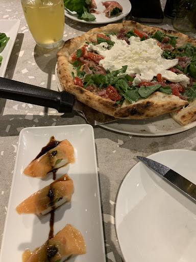 The atmosphere is warm and inviting, with a stylish yet cozy interior. It’s a great spot for both casual dining and special occasions. The open kitchen concept allows guests to see their pizzas being freshly prepared, adding to the experience.