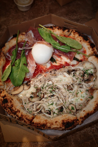 Every dish felt intentional and beautifully crafted. The house-made burrata was incredible — creamy, fresh, and a highlight on its own. The pizza crust was perfectly blistered, with a light chew that you only get from true wood-fired pies. I ordered the half-and-half pizza and both flavors were top-tier. The 4-cheese with honey was especially memorable, combining rich, bold flavors with a subtle sweetness.