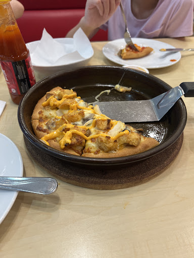 Pizzza Hut thì nổi tiếng rồi, cơ mà mình thấy ăn ko được ngon như hồi mới ra. pizza ăn cảm tưởng hơi khô và nhân cũng ko được nhiều cho lắm. với giá cả 100-200/ cái thì giờ có quá nhiều quán để lựa chọn ngoài thị trường, nếu đi hôm có khuyến mãi mua 1 tặng 1 thì ok, chứ bình thường mình cũng ko thích pizza lắm. quán có thực đơn đa dạng, pizza các loại nhân cho đến mỳ ý, bánh mỳ nướng bơ tỏi ăn cũng ngon. nước uống cũng phong phú, nv nhiệt tình Pizza Hut time city đi từ cầu thang T12 xuống thì quán nằm ngay phía bên tay trái còn không thì cứ định vị đối diện cửa vào vin mart. Cơ sở này mặc dù nằm trong trung tâm thương mại nhưng không gian cũng rộng, ngồi ăn thoải mái. Nhân viên nhẹ nhàng, thời gian báo đồ chính xác. Mình chọn set combo hai nước và 1 bánh cỡ vừa đang được ưu đãi 109k siêu rẻ. Bánh pizza hut thì vẫn nổi tiếng đế dày ngon giòn rồi nên miễn bàn về chất lượng. Mỗi tội mình gọi bánh rau củ, cơ sở này hơi hà tiện về sốt trên pizza nên ăn không tròn vị cho lắm. Hai món nước mới phát triển gần đây là trà đào hạt chia uống ngon, vị trà đậm, ngọt vừa miệng nhưng miếng đào ăn kèm hơi chua. Trà kem sữa uống cũng khá ổn , so với hàng trà sữa chuyên thì chắc cỡ ngang good tea. Nói chung ăn được combo rẻ nên chất lượng này...