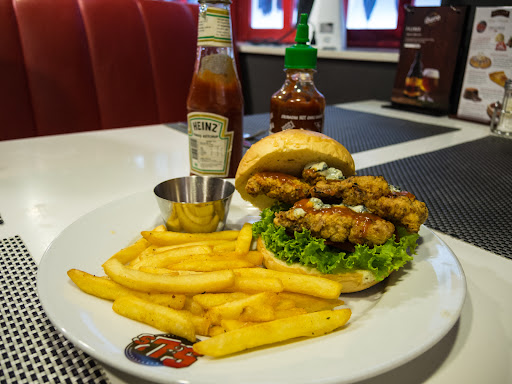 Read moreThis was a nice little find in Hanoi. They claim to be Hanoi's only dedicated burger joint, maybe it's true. The Menu is extensive and all American, Mac cheese, wings, ribs , steaks, you name it and it's probably there. I opted for the burger with mushrooms and blue cheese, I was not disappointed, the burger was cooked medium and was pretty good, the bun was excellent as were the fillings, plenty of blue cheese and mushrooms. The staff are friendly and attentive. The atmosphere however I felt let them down a little, the heavy use of red in the décor gave it a stark cafe feel and the music was dreadful, I know they are looking for the American vibe, but 50s music misses the point, they need to be playing more 60s music , that's a bit more upbeat. All-in all an excellent dinner, would recommend. I returned two nights later in great anticipation, sadly this is a tale of two meals , the first (as above, excellent) the second of chicken wings and chilli nachos was a complete let down , over cooked greasy wings and the most bland chilli nachos...