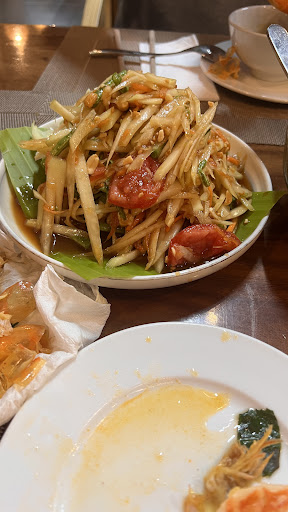 Chúng tôi cảm ơn vì nhà hàng đã làm gỏi đu đủ không cay theo yêu cầu. Tuy nhiên, món Tom Yum lại gây thất vọng. Dù trong thực đơn có phần nhỏ, nhưng nhân viên nói không có và chúng tôi buộc phải gọi phần lớn. Nước súp nhạt nhẽo, loãng và chỉ có 3 con tôm chưa bóc vỏ.