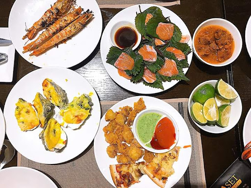 Read moreHôm qua mình đi ăn tất niên cùng với gia đình và họ hàng nên đã chọn một quán buffet hải sản gần đây cũng khá nổi tiếng ở Hà Thành. Đó là quán SET buffet với nhiều món đakhác nhau. Đầu tiên đó là khu sushi và sashimi, mình ấn tượng sashimi cá hồi ở đây vì nó rất tươi và ăn vào hơi bùi, nhưng đông khách quá nên hết rất nhanh. Sushi thì có sushi thanh cua và sushi trứng cá hồi ăn rất ngon. Khu tiếp theo là khu đồvà đồ Âu, có những món như: bánh bột lọc, há cảo chiên, xúc xích chiên, xôi chiên, bánh ướt, kimbab chiên và pizza. Mình thích ăn pizza ở đây được nướng nhiều phomai nhưng ăn ko bị ngậy mà vẫn giữ được vị giòn. Tiếp đến khu mọi người hay đến nhất là khu hải sản , ở đây có những món: cua hấp, cua rang me, ốc móng tay, ốc hương, sò huyết, hàu bỏ lò phomai, mực nướng và tôm nướng muối ớt. Đến đây mọi người nên ăn cua rang me và hàu bỏ lò phomai nha vì cua rang me ở đây nếu bạn nào may mắn ăn được con cua gạch rất chi là tuyệt vời luôn, còn hàu bỏ lò phomai được phết một lớp phomai cheddar và được nướng nóng nên rất ngon ngọt và mềm. Khu tiếp theo là khu đồ nguội bà salad có những món: thịt nguội, nụ mị, salad hoa quả, các loại nộm rau khác nhau để ăn kèm hải sản cho đỡ ngán. Tiếp đến là khu đồ cuốn, có phở cuốn bò, bún cuốn thịt, phở cuốn tôm ăn thanh thanh và có rau nên rất mát. Còn có những món như cháo hạt sen, soup cua, mì kem hải sản, bò sốt vang ở đây được nấu khá đậm vị và béo ngậy nhưng không bị quá ngấy. Khu cuối cùng là khu tráng miệng, có hoa quả theo mùa và các loại chè khúc bạch và tào phớ, ngoài ra còn có các loại bánh ngọt: bánh cắt miếng và sukem được cái vỏ bánh khá mềm. Cuối cùng mình tráng miệng bằng caramen và sữa chua thì cảm thấy ở đây làm sữa chua cũng có tâm, ăn rất dậy vị chua vì mình thích ăn chua nên rất thích. . Điểm trừ: gần Tết nên tăng giá mỗi người lên 100k, đồ ăn khách lấy hết rất nhanh nhưng ko chuẩn bị kịp cho khách sau thì đã hết.. Giá thành: 329k/1 ng buổi trưa ngày thường, 389k/1ng buổi tối ngày thường và ngày lễ. . Địa chỉ: SET Buffet - 214 Hào Nam, Tầng 6 NHS...