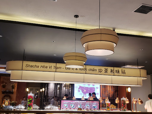 Read moreKhông gian rộng rãi, khá sang trọng, phù hợp với cả cặp đôi, gia đình và có phòng riêng để tổ chức sự kiện nhỏ hoặc tiếp khách. Tuy nhiên cách bố trí bàn ăn ở chính sảnh chưa phù hợp với mô hình buffet, người ngồi bên trong không thuận tiện trong việc ra ngoài lấy đồ ăn. Trạm đồ ăn sẵn đều là các món cơ bản, đồ ăn bị nguội, bánh mỳ hay pizza đều cứng, xiên thịt dai, cứng và không ngon. Dẫu biết nhà hàng không chuyên những món này nhưng cũng cần phải cải thiện. Khu pha chế nước chấm khá đặc sắc. Trạm thịt bò ở mức tạm được. Khay thịt khá ít, chỉ lấp đầy khoảng nửa đĩa, miếng thịt thái mỏng, nhỏ. Trong 1 số khay, phần khoảng trống của khay không được sạch, mong rằng đây là do phần thịt dính vào khi xếp thịt chứ không phải dùng lại khay cũ. Nói chung khay thịt không được sạch đẹp, đầy đặn như các video, hình ảnh quảng cáo nhưng chưa đáng để chê. Trạm đồ nhúng lẩu rất sạch đẹp, nhiều loại rau củ, viên thả lẩu. Trạm hải sản không sử dụng nên không đánh giá về chất lượng. Tuy nhiên người nhà mình, dù khá thích ăn hải sản, sau khi vào xem các loại hải sản trong trạm, cũng đánh giá không có gì đặc biệt ngoài baba, nhưng cũng không hợp ăn cùng thịt bò. Mọi người nên cân nhắc khi chọn suất bao gồm hải sản. Khu vực đồ tráng miệng nhỏ, không có nhiều loại nhưng cũng ổn. Nhà mình ăn vào tối thứ 7, khách ngồi kín nhà hàng nhưng các bạn nhân viên vẫn quán xuyến được công việc, nhiệt tình, niềm nở. Tuy nhiên góp ý nhẹ là khi các bạn đi dọn bát đũa khi thấy khách ngừng ăn, hãy nói khéo léo hơn để tránh khiến khách nghĩ đang bị đuổi. Vẫn khá hài lòng về thái độ và cách phục vụ của các bạn nhân viên. Các bác bảo vệ cũng nhiệt tình chỉ dẫn, che ô cho khách khi trời mưa. Không có nhiều vấn đề đáng chê và đều có thể khắc phục dễ dàng. Nhà hàng chỉ cần thể hiện đúng như những gì quảng cáo thì đã xứng đáng với giá vé 2...