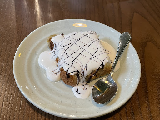 The banana cake is 25k and the hot cocoa 54k. Both are basic and not particularly...