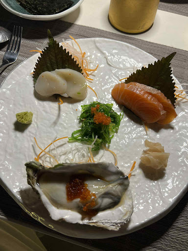 Có vẻ không gian hợp quán pub hơn là nhà hàng. Dường như quán muốn tận dụng thời gian chiều tối để kinh doanh thêm. Lối vào hơi đánh đố: đi qua shop quần áo mới có thang máy. Nên đặt bàn trước để nhân viên gọi điện hướng dẫn. Có 3 menu 400k, 750k và 1000k. Về tổng thể không gian và chất lượng món đã thử thì chỉ nên chọn 400 và 750k. Mức 1000k là mức fine-dinning rồi, mà nhà hàng này thì chưa đạt tầm đó. Ở khúc 1000k, m sẽ có nhiều lựa chọn tốt hơn trên tổng thể. Thực đơn kết hợp cả phong cách Âu và Nhật, hơi ố dề nhưng cũng là sáng tạo kiểu của nhà hàng. Mọi thứ đều chấp nhận được nếu ngon. Nói kỹ về 2 thực đơn 400 và 750, vì đây là menu m đã ăn. Starters Salad: 400k có salad cua và bacon, 750k có nhiều cua hơn. 6/10. Ăn tàm tạm. Ko dở nhưng cũng ko có gì đặc sắc. Appetizers Trứng hấp nhum biển: 5/10. Trứng ko có được vị mềm và ngậy. Thực đơn 400k m chọn Kushi yaki: tôm sú cuộn ba chỉ, ba chỉ cuộn củ sen và cánh gà. Món cánh gà cho 4/10. Ba chỉ cuộn củ sen và tôm 6/10. Được điểm hình thức trình bày bắt mắt. Thực đơn 750k m chọn sashimi cá hồi, hàu và sò điệp: 7/10. Hàu cảm giác khá tươi. Chấm vừa miệng. Main: Thăn bò. Suất 400k 50g còn 750k là 100g. Miếng thăn hơi nhiều mỡ và gân, răng yếu phải ngồi nhả bã :) Rộng tay cho 5/10 Last có cơm rang cá hồi (400k) và sushi wagyu (750k). 2 món này ăn được, 7/10. Tráng miệng: Panna cotta 7/10. Ko quá ngọt. Về tổng thể chắc 6/10. Định lượng ổn, đủ 1 người, ko lo thiếu. Với cá nhân, nếu quay lại mình sẽ chỉ chọn suất 400k vì theo đánh giá tay nghề, chất lượng trên phân khúc nhà hàng, m sẽ chỉ chi trả cho từng đó tiền cho 1 bữa ăn tại đây. Nếu nhiều tiền hơn, m sẽ lựa chọn nơi khác. Nhà hàng thu 10% phí nhưng ko xuất hoá đơn VAT. Hỏi thì nói phí phục vụ. Vậy nên mình ko tip. Thanh toán bằng chuyển khoản hoặc tiền mặt, ko tt bằng thẻ. Một chi tiết nhỏ với ng OCD: Cái gác đũa còn nguyên giá tiền 35k, hẳn là mua theo lố. Các bạn ko rửa trước khi đem ra phục vụ? Vì cái dán giá ngâm nước nóng là bong rồi. Ko gian nhỏ xinh xắn. Nhìn xuống phố trung tâm. Hẹn hò chắc hợp lý. Mỗi tội hơi muỗi. Chưa thử đồ uống nhưng...